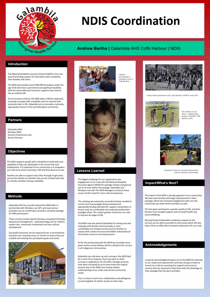 As an insurance scheme, the NDIS takes a lifetime approach, investing in people with a disability early to improve their outcomes later in life. Galambila aims to provide a culturally appropriate service to the local Aboriginal community.