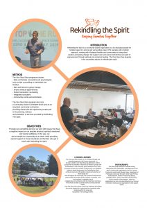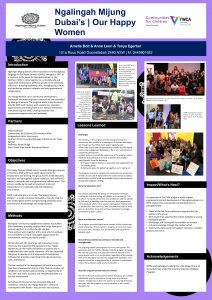 These posters were showcased at Revisiting Aboriginal Wellbeing – A Celebration of Regional Partnerships. Each describe projects and programs that focus on the wellbeing of Aboriginal and/or Torres Strait Islander people, paying particular attention to the cultural determinants of health. Thank you to all who submitted an abstract.
