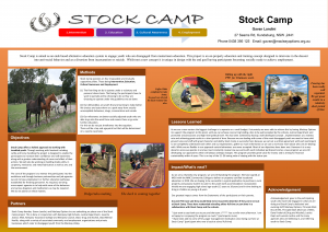 Stock Camp is aimed as an ends based alternative education system to engage youth who are disengaged from mainstream education. This project is an on-property education and training concept designed to intervene in the descent into anti-social behaviour and as a diversion from incarceration or suicide. Whilst not a new concept it is unique in design with the end goal having participants becoming socially ready to achieve employment.